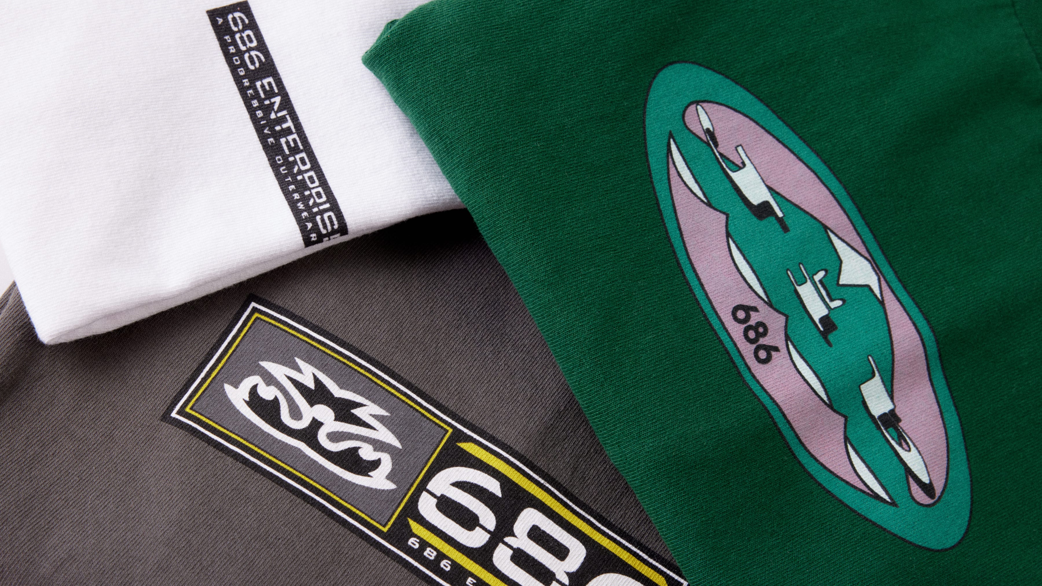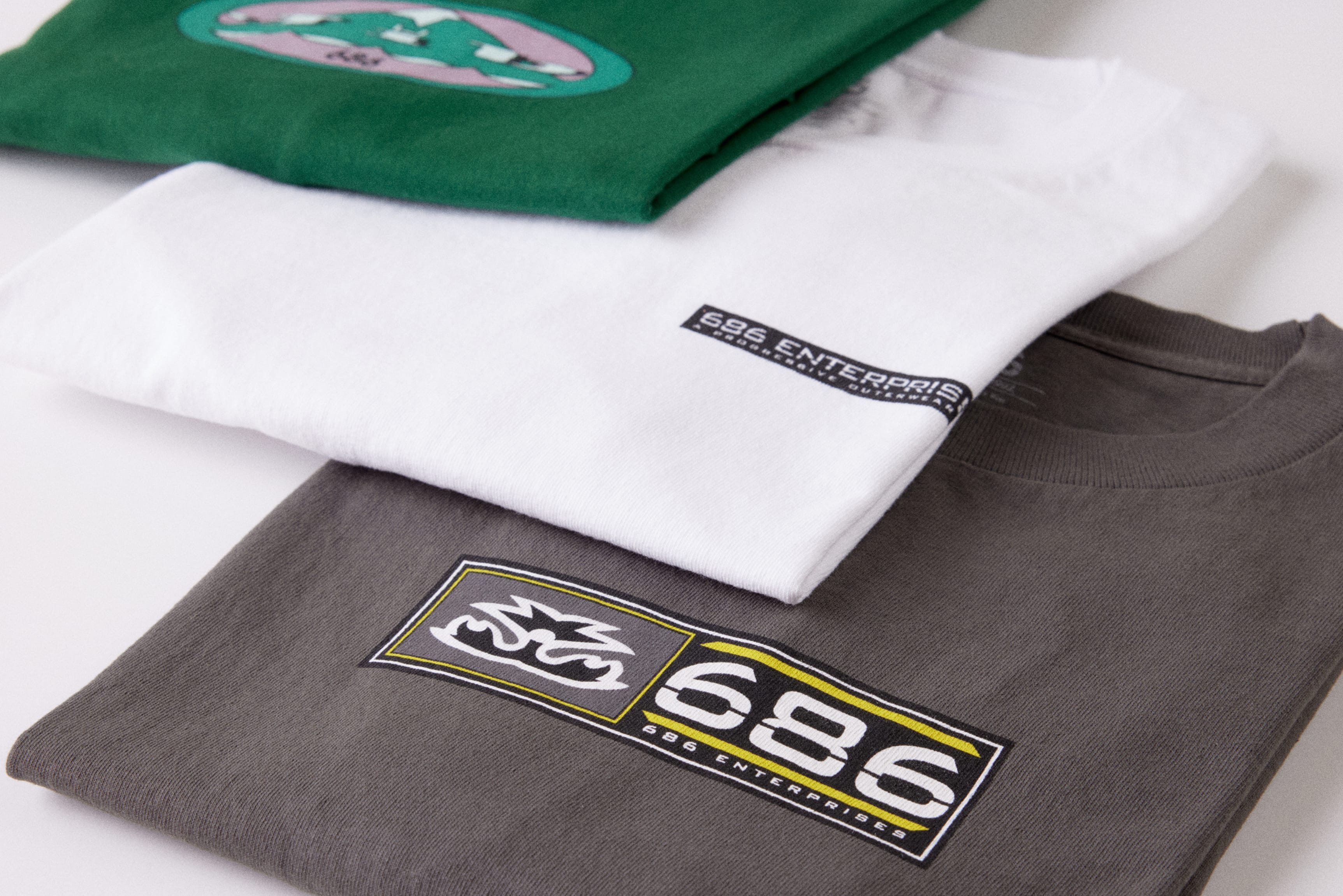 All this and more leads to apparel that we feel proud to put the 686 logo onto. The first drop is based off our deep heritage that stretches back to 1992. We’ve dipped into the archive for this collection of heritage graphic tees. Direct from our old catalogs to you, we selected some of our favorite logos and graphics from the 90’s and 00’s. Keep on the lookout as there is much more to come.