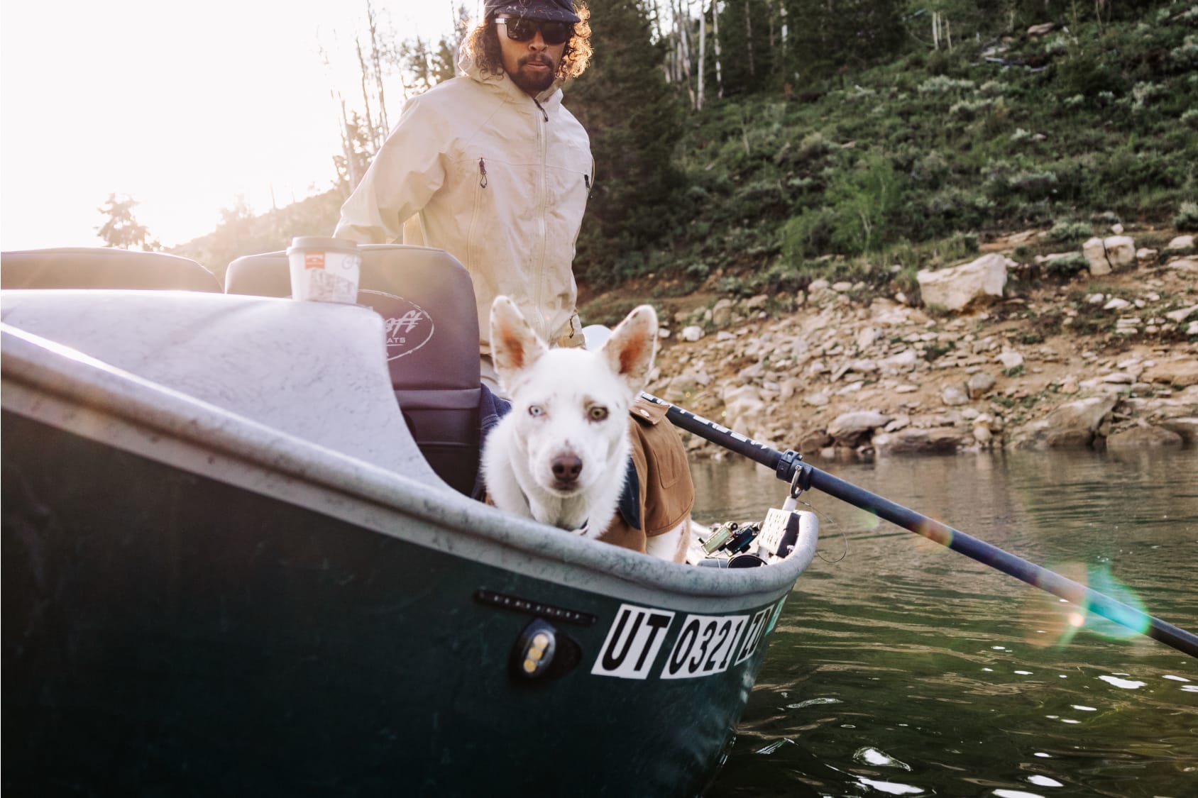 Then - as the snow melts down into rivers, lakes, and reservoirs - Jake migrates the same path to spend his days casting into these waters. His approach to fishing mirrors the creativity of his riding. Always searching for the untouched spot that will deliver the goods and expanding his mind in the process. It’s not just the catch that he’s after but the entire experience. The pre-dawn boat launch, deep conversations with old friends and new strangers, or just spending hours in his own head with his dog Boomer co-habiting the silence. Boomer is becoming infamous in his own right and is down for an adventure winter or summer. Chasing after his human in the backcountry and patiently relaxing on the boat.