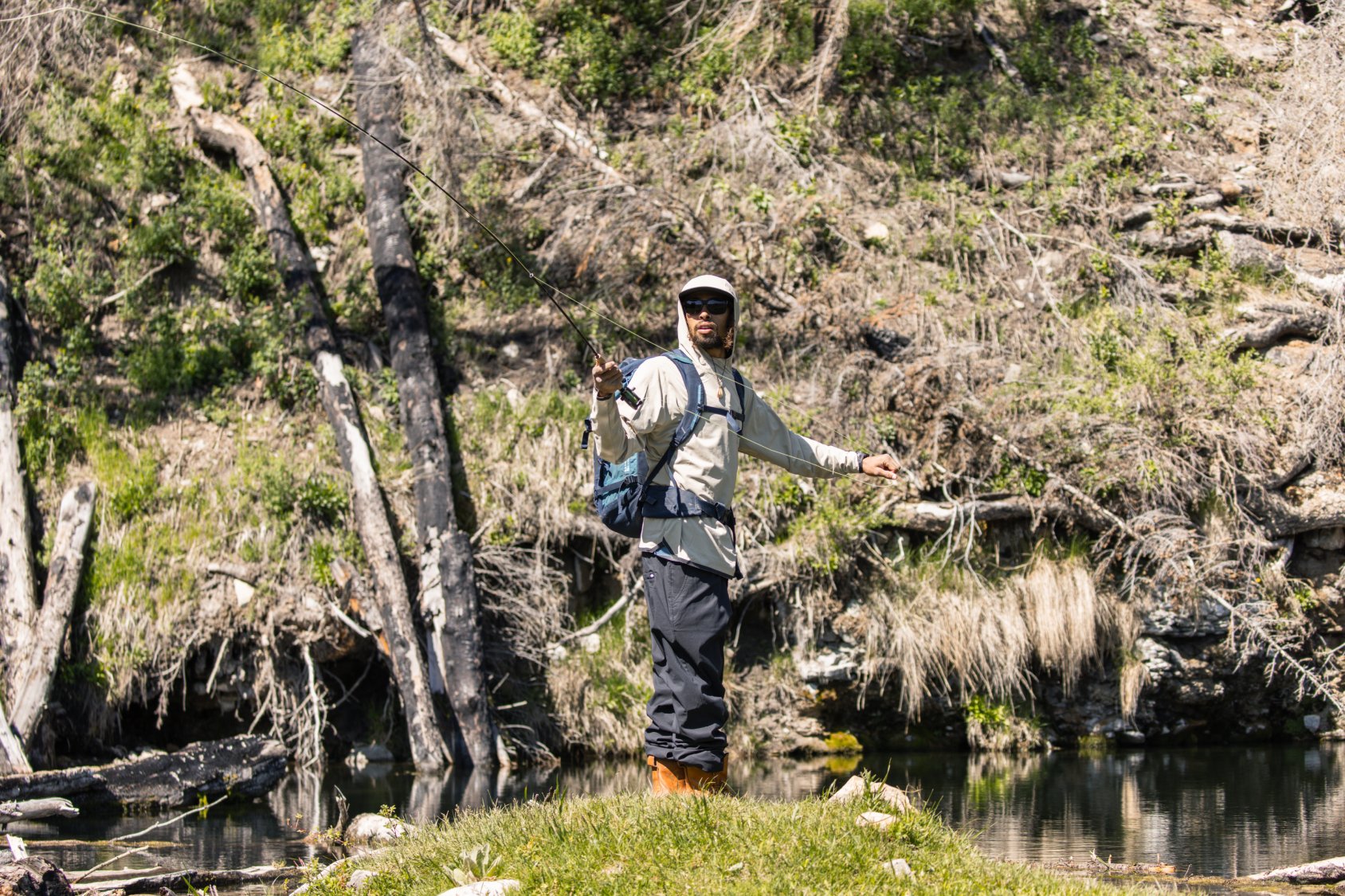 Fishing days mirror backcountry ski days with dawn patrols that start cold and dark. Perfect conditions for the GORE-TEX PACLITE Jacket with layers underneath. Next, a few minutes of epic sunrise give pause for renewed inspiration before the day heats up. The unforgiving sun, now overhead, allows the Sun Hoody and Featherlight pants to do what they do best.