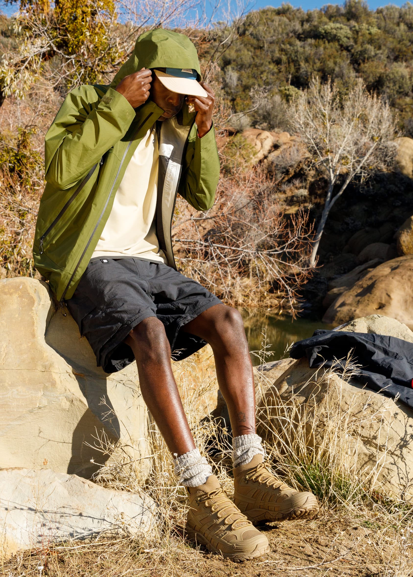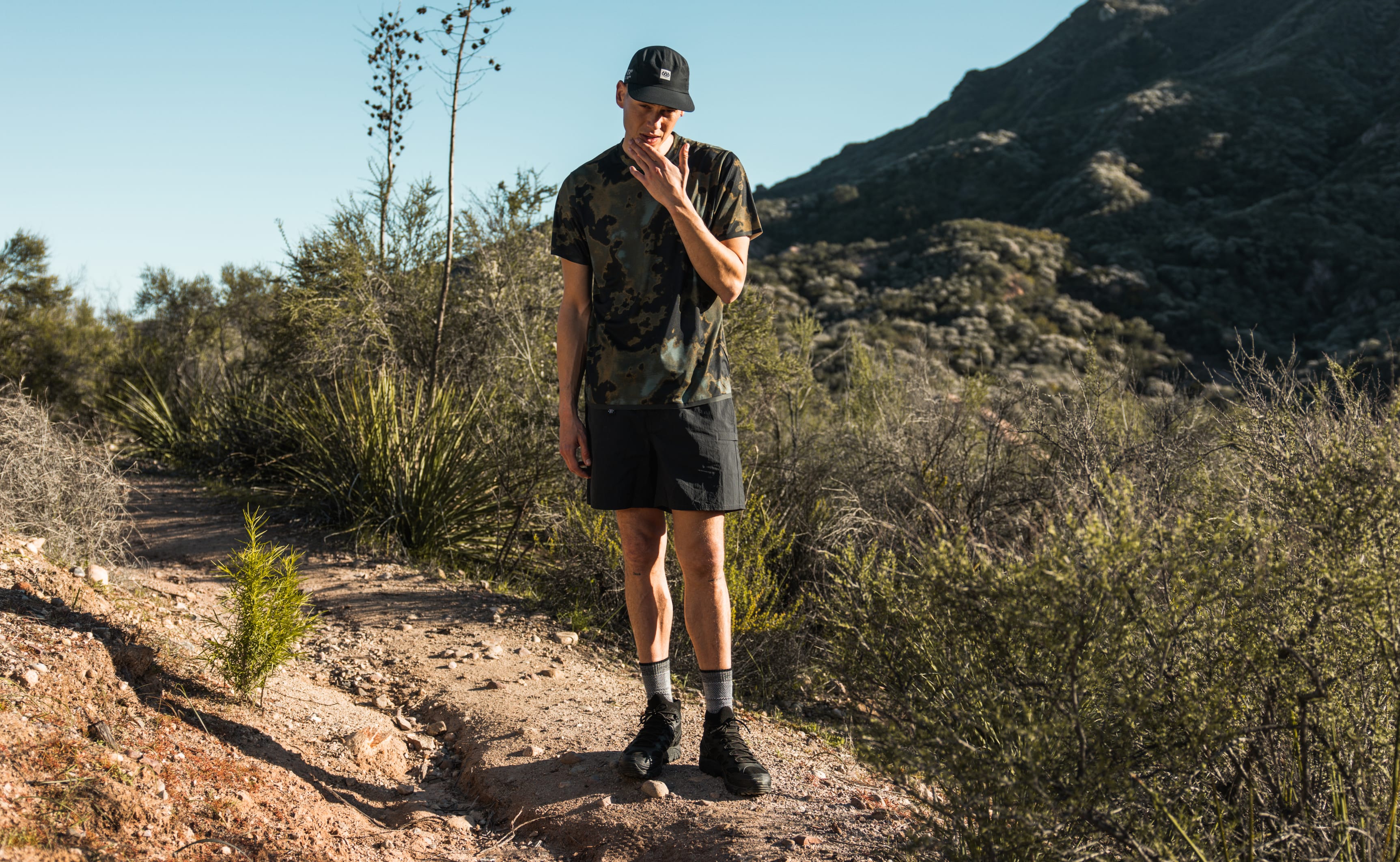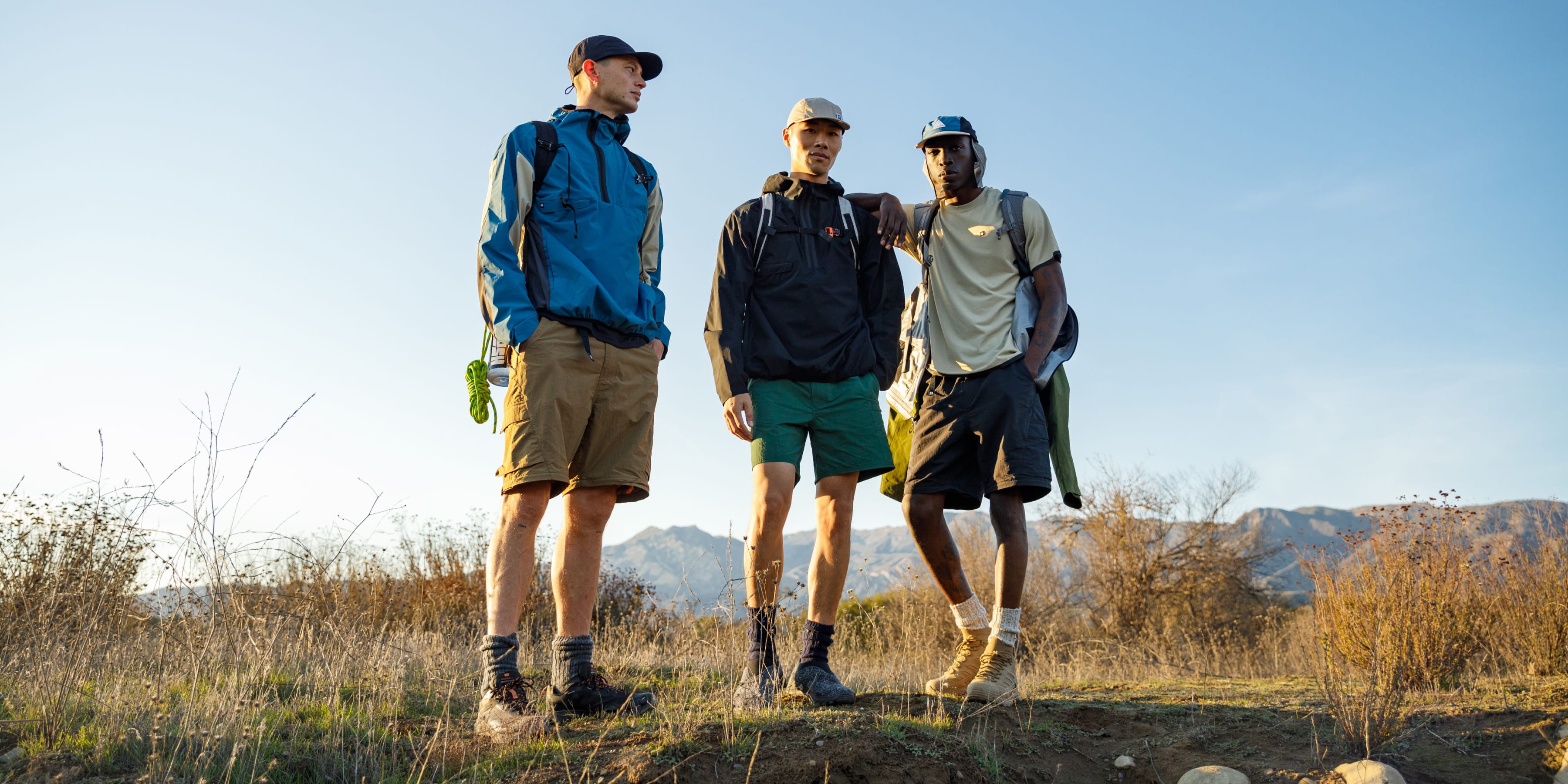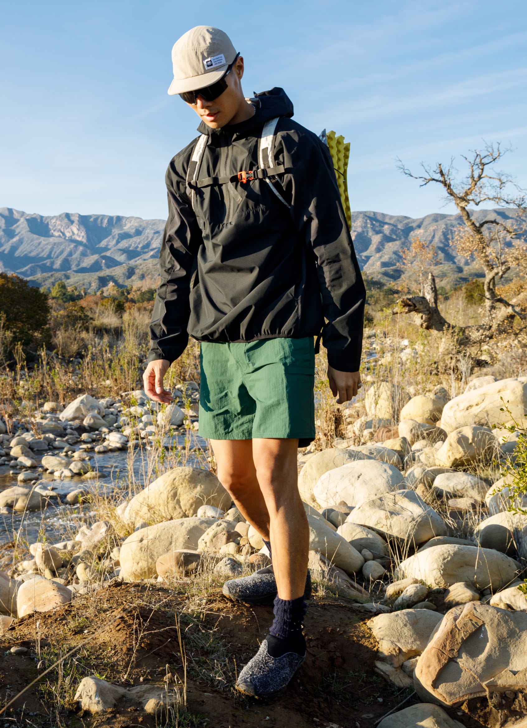 So, don’t worry… you won’t lose your crinkle on the trail. Pure nylon has many great properties, but not a lot of give because we didn’t want to add spandex to this textile. To compensate for the lack of stretch our designers focused on looser, ergonomic fits when working with this fabric. Tri adds, “That's why for these types of silhouettes, we made them baggier to accommodate perfectly for high movement activities.”