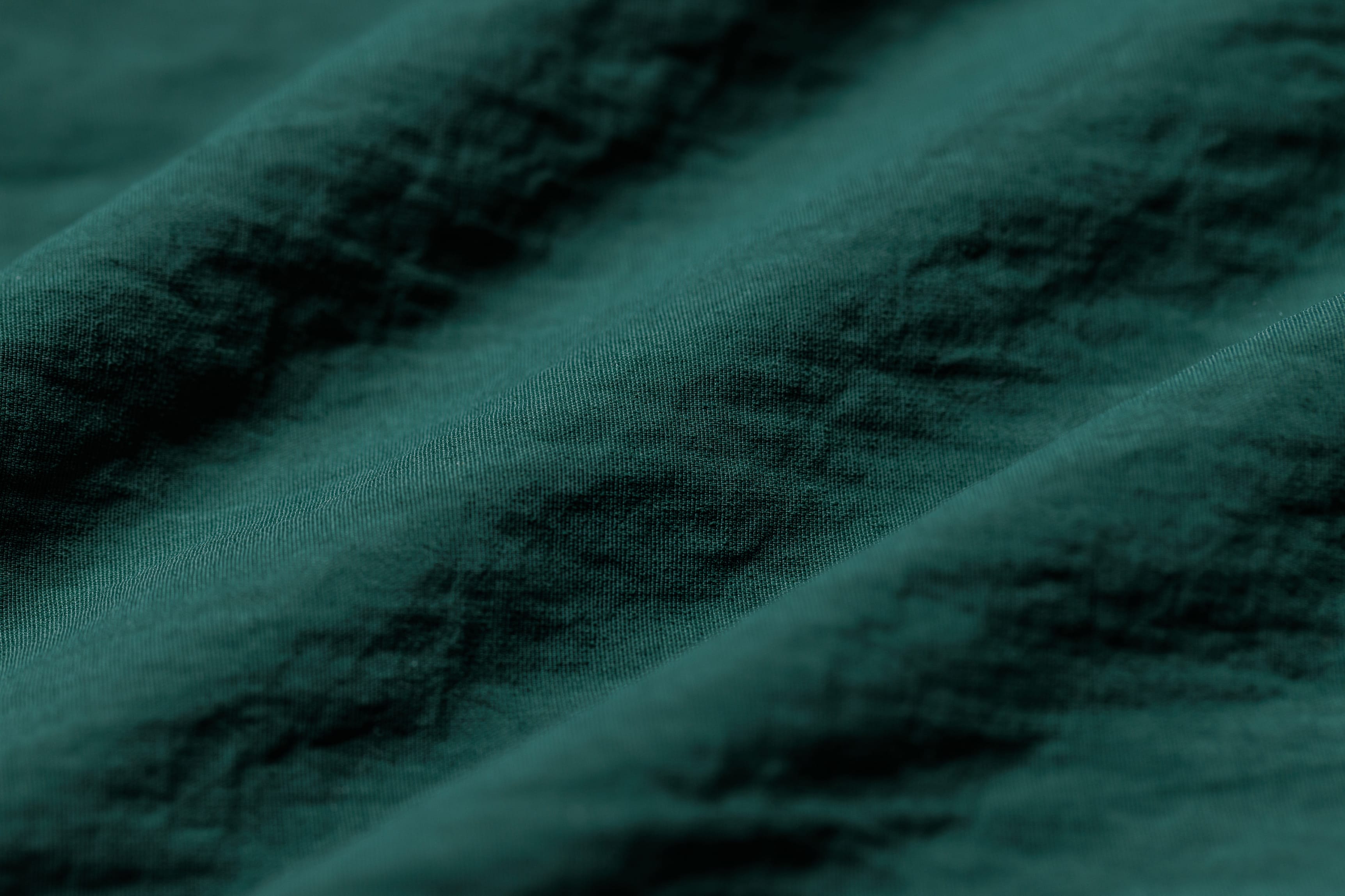 "The crinkle comes from the actual yarn itself; it’s just spun that way. So, it gives a little crinkle when it's woven together, slight dimples so your fabric doesn't look as flat. It has many highs and lows so there’s a lot of depth versus something like a poplin that is flatter. Its three-dimensional look gives you a much more pronounced visual.”