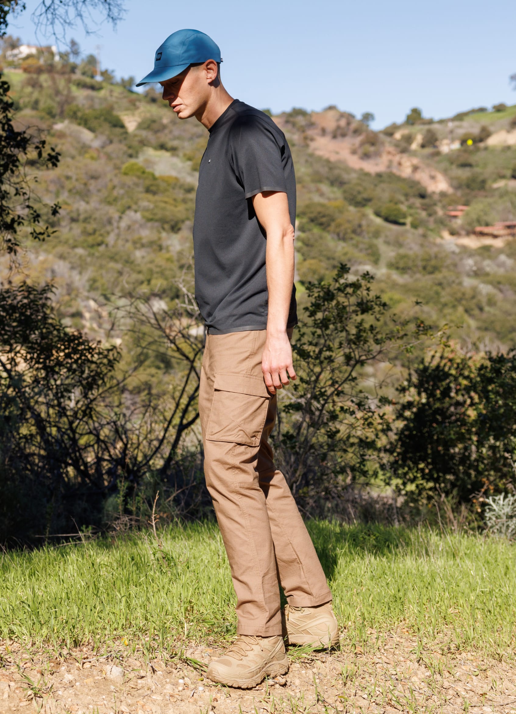 There are a few details that make our ripstop stand on its own. For our own collection we added 2% spandex for mobility and comfort. Additionally, we applied the ripstop to cotton instead of the nylon traditionally used in tactical wear and outdoor gear. This gives our apparel a more natural drape on the body and the ability to perform in the streets and in nature.